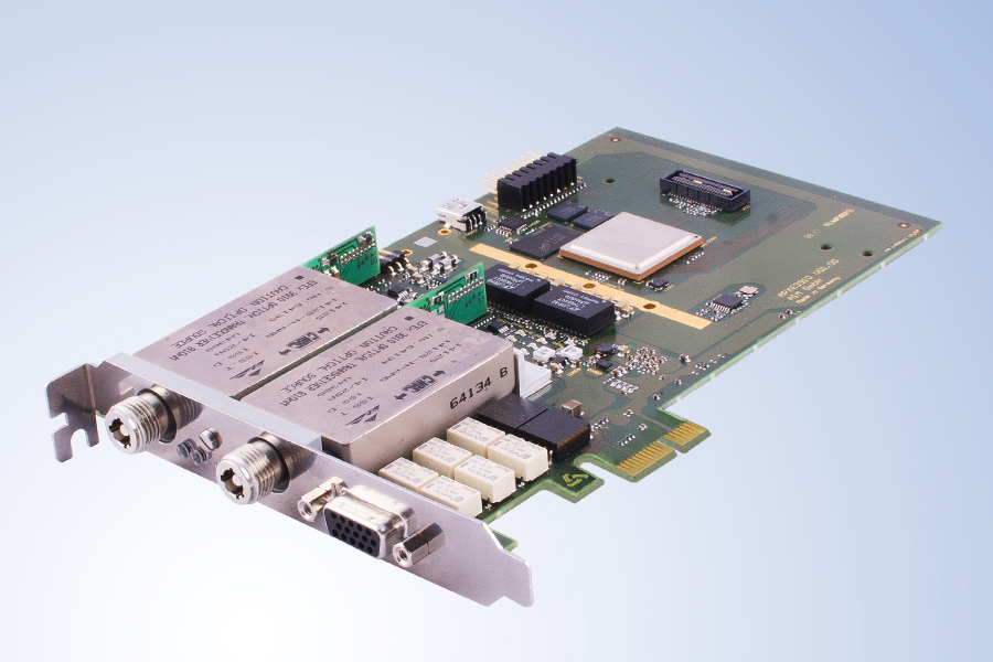 Módulo de STANAG-3910/EFEx para PCIe con 1 canal de alta + 1 canal de baja redundantes incluido un panel frontal óptico (FOFE). Posibilidad de versiones con rango extendido de temperatura y humedad. Todas las tarjetas son compatibles con EFEx.